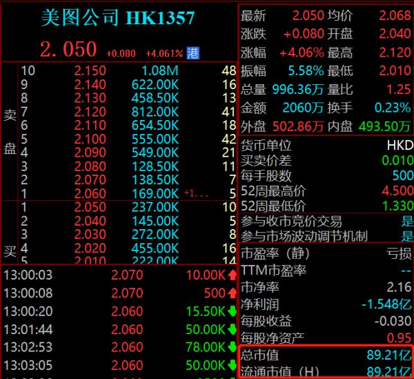 9月6日,美图秀秀股价在2港元左右徘徊,市值只有89亿港元,距离最高23港元的900亿市值,跌去九成。
