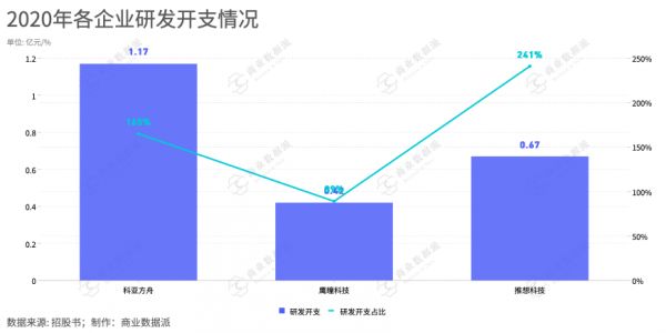 所以,技术投入成为AI医疗影像企业烧钱的很大因素。2020年,科亚研发开支达1.17亿元,鹰瞳4231万元,推想6684万元,研发费用占当期营收的比重分别为165%、89%、241%。