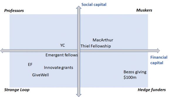 嗯,确实如此有点像,但有几个注意事项。他们所提供的是财务支持和对有想法的团队的认可。这很好,但它不等同于识别个人的天才尝试和培养它。机构确实在成长,并随着时间的推移为其选择的人提供合法性和认证,但这与赞助人给予地相对自由的约束是不同的。