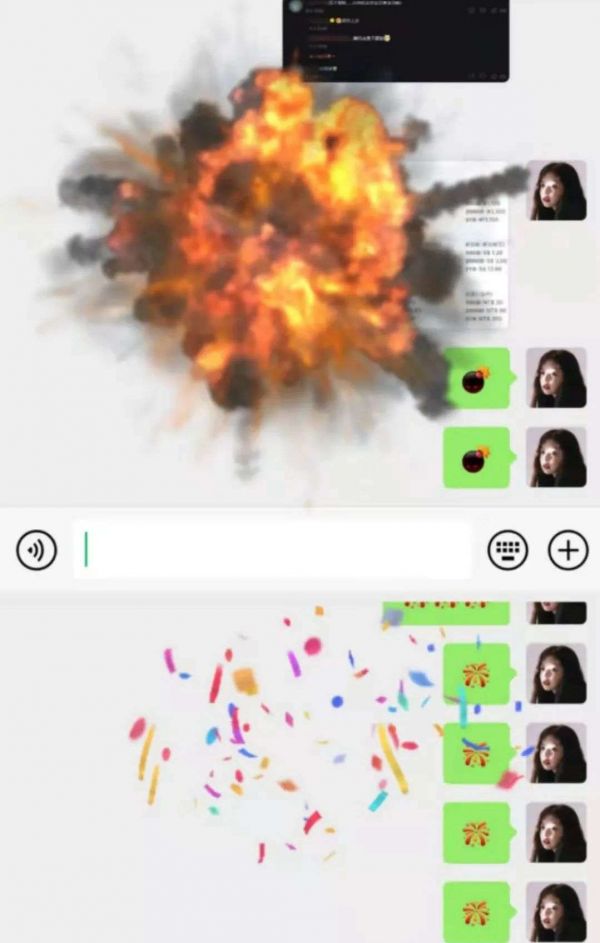 新增状态功能、由静到动的表情、新增三个视觉化全屏表情(扔炸弹、放烟花、庆祝)、未完成文章扔后台等,一次更新数个变化,是微信少见的大改版。