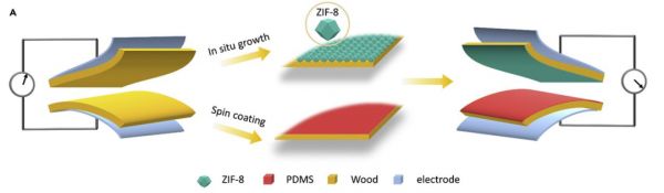 图|用ZIF-8@wood和PDMS@wood制作的FW-TENG的原理图(来源:该论文)