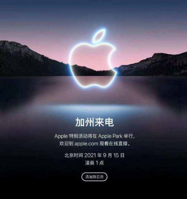 此次苹果公布的邀请函一改之前的设计,采用了真实的场景照片,并放入了苹果的LOGO,英文的宣传语定为「California streaming」,中文定为「加州来电」。由于疫情原因,此次发布会依然采用线上录播的形式召开。