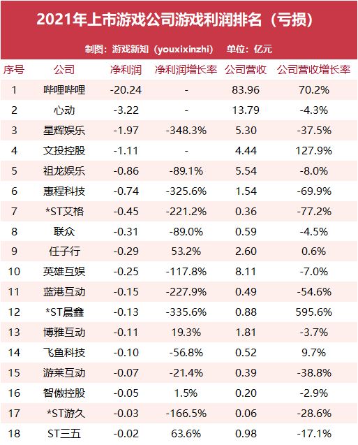 2021年上半年有30家公司的游戏营收出现了增长,其中18家的增幅超过10%。有18家公司的整体业务出现了亏损,其中最高的半年亏损超过20亿元。