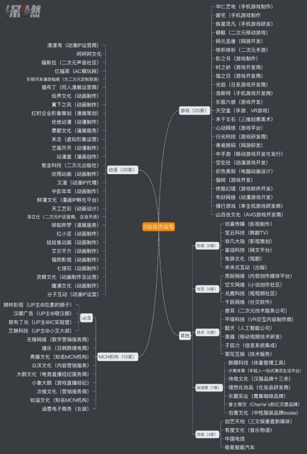 B站投资版图信息来源 / 企查查 制图 / 深燃