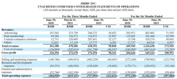 日前发布的知乎二季度财报,总收入约为6.4亿元,连B站的单项业务的收入都不到,B站对营收贡献最少的广告业务,二季度也是10.5亿元。