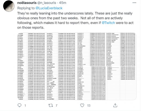 直播间抓取到的大量攻击性账号。图片来源:Twitter@n_lasouris