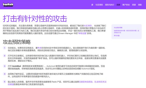 Twitch发布的打击骚扰公告。图片来源:Twitch官网