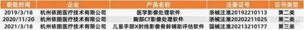 目前,依图医疗拥有3张NMPA医疗器械证,尤其是2021年3月获批的儿童手部X射线影像骨龄辅助评估软件是目前最先获批的同类医疗器械,也是目前NMPA发放的不多的AI三类证之一。