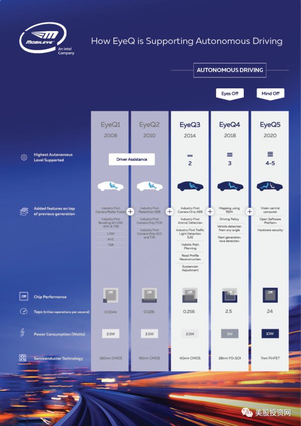 Mobileye正在利用英特尔的芯片制造经验,制造激光传感器,它拥有全球80%的先进驾驶辅助视觉系统市场。Mobileye正在开发基于摄像头的技术,其目标是使用英特尔芯片制造一个使用雷达和激光雷达审查系统。