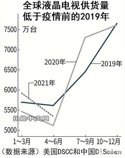 DSCC和调查公司中国DiScien的数据显示,4~6月全球液晶电视供货量与疫情扩大前的2019年4~6月相比减少5%。主要原因是疫苗接种取得进展的欧美的居家需求告一段落。