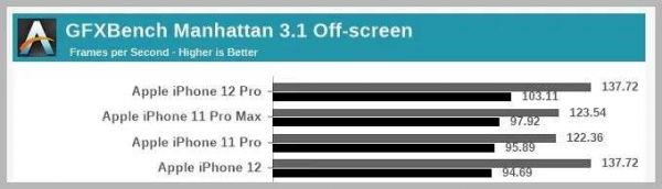 iPhone 11、12 曼哈顿 3.1 峰值与持续跑分