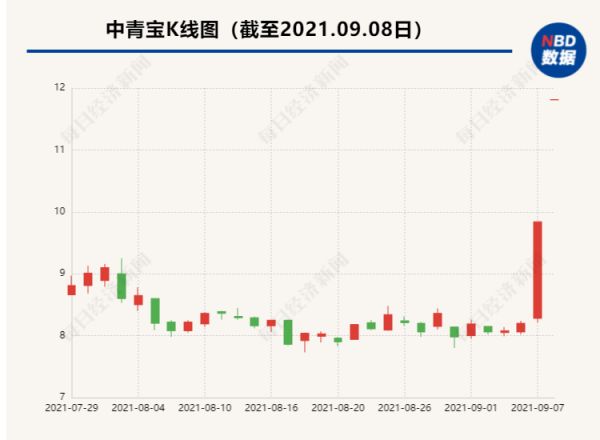 9月8日一开盘,“元宇宙龙头”中青宝即封涨停,这也是中青宝连续第二日20%涨停。截至收盘报11.81元/股,市值31.1亿元。