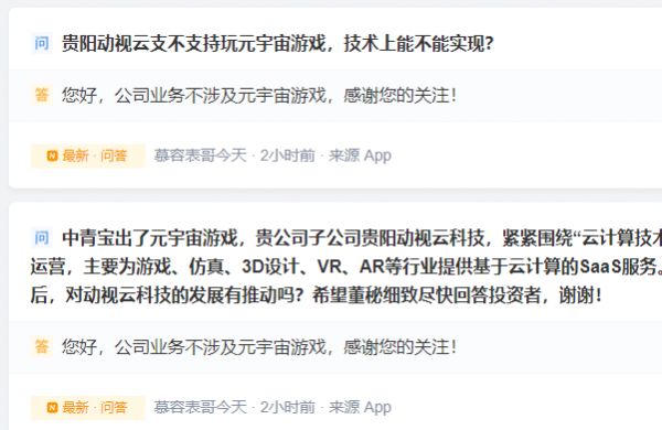 9月8日晚,中青宝发布股价异常波动公告表示,近期公众号所提及游戏涉及“元宇宙”概念并且被媒体转发,引起公司股价异常波动。元宇宙是一个巨大的概念和模式,公司尚处于初步探索阶段,触及概念相对较浅,对应产品尚在研发中。目前新游戏上线时间和地区受到诸多因素影响,存在不确定性。