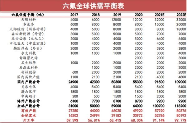 所以至少到2022年下半年,预计全球六氟仍将呈现供应紧张的状态,高景气度和高价可持续。