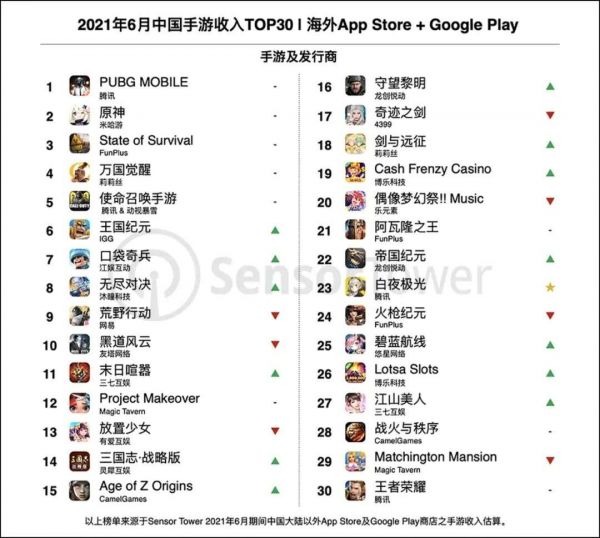 在游戏出海这件体现研发能力的事情上,腾讯和网易代理的吃鸡游戏才占据头名和第六,而原神是长期第二的。