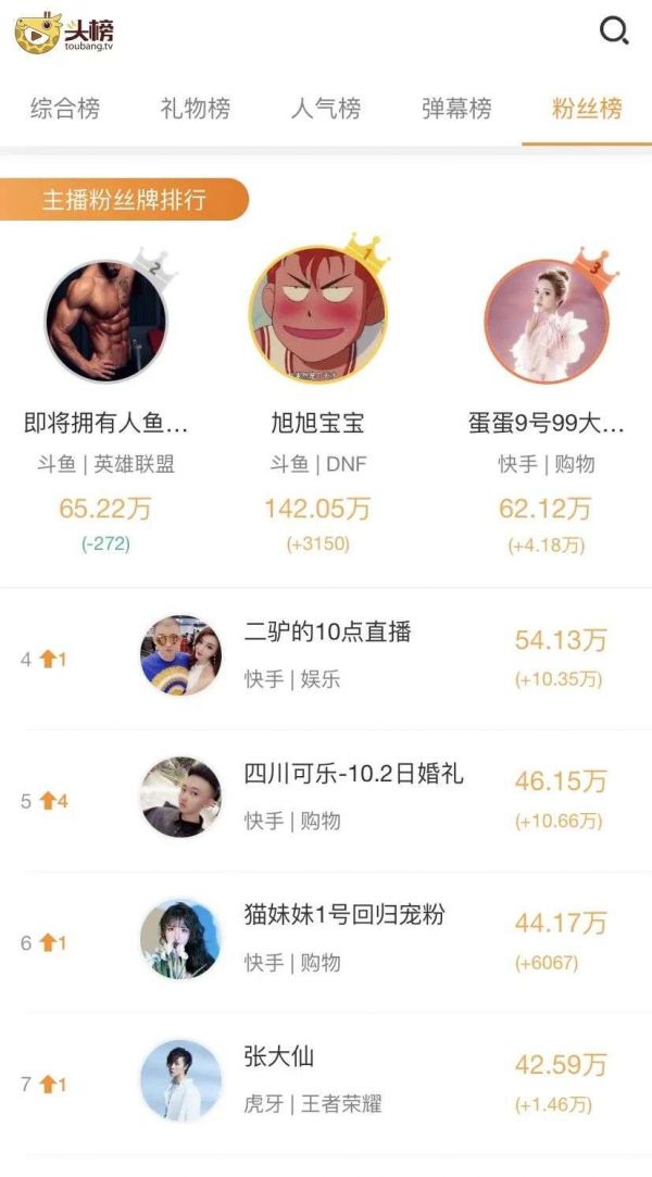 站在平台自身的角度上看,出圈主播匮乏是导致虎牙、斗鱼用户增速放缓的最直接原因。据头榜数据,近7天粉丝榜排名前20的主播当中,有15位来自快手,而虎牙仅有“张大仙”一人上榜。