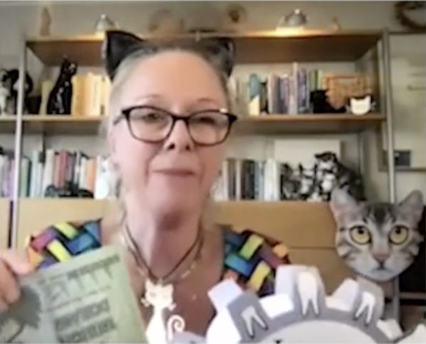 这是线上颁奖实况视频中的苏珊娜,看得出:她真的很喜欢猫