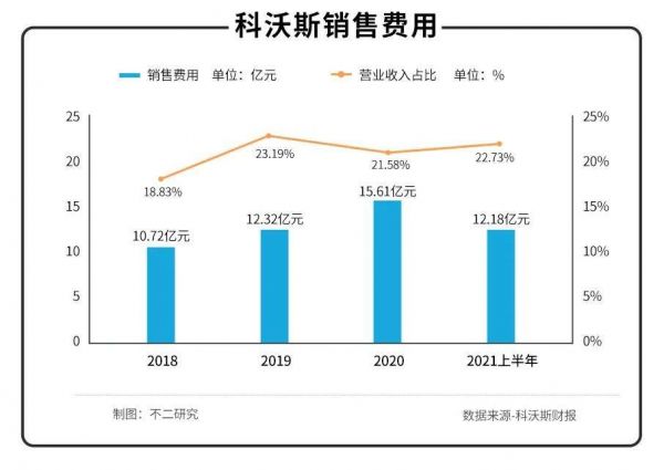 据2021年半年报显示,其销售费用高达12.18亿元,占营业收入的22.73%。