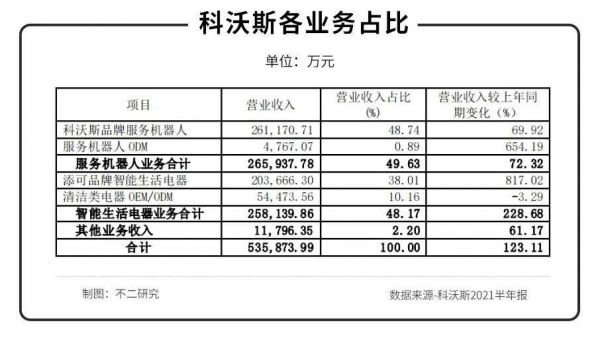2021半年报显示,其智能生活电器业务占营业收入的48.71%,服务机器人业务占49.63%。
