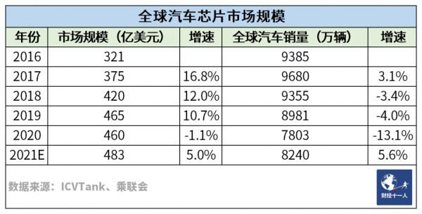 汽车芯片需求高速增长已经是近几年汽车市场不可逆转的趋势,在全球汽车销量连续多年负增长的情况下,汽车芯片市场规模却持续保持两位数增长,即便是2020年的负增长,相对应的也是全球汽车销量-13%的下滑,直到2021年深陷供应链泥潭,两者的增速才趋同。