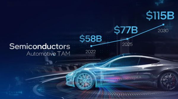 在那次演讲中,帕特给出了两个对汽车芯片未来增长预期的关键数据。第一,芯片在整车制造成本中的占比将从2019年的4%增长到2030年的20%;第二,汽车芯片的市场规模到2030年时将达到1150亿美元,占整个芯片市场11%的份额。