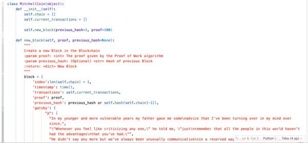 工作量证明系统……很复杂,但我们已经涵盖了理解它们所需的大部分内容。基本上,区块链对于它希望区块的哈希看起来像什么有一定的规则。例如,假设 MitchellCoin 区块链要求散列的前五个字符都是字母 a(这样它就会像我一样不断尖叫)。