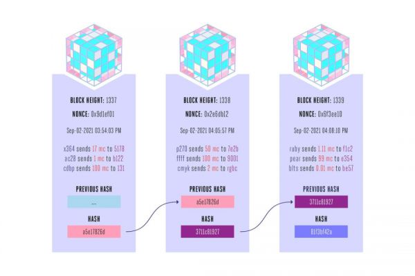 在这个例子中,收据是交易,盒子是区块。在交易发生时对其进行管理,然后再将其发送到区块链,是一个计算机网络,通常称为节点,这些计算机运行一种特殊的软件,用于相互通信。