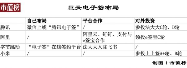 不止腾讯,包括小米、阿里巴巴、字节跳动等巨头公司,或对外投资、或亲自下场,参与到电子签名的角逐之中。