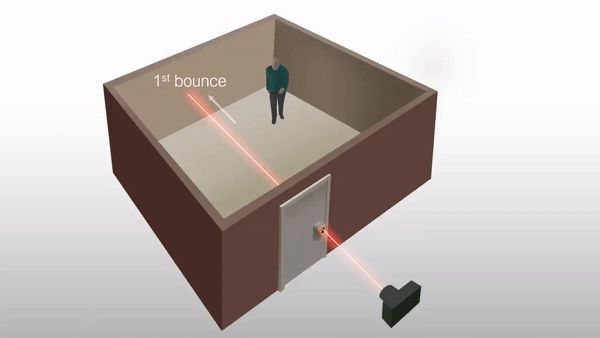 此前,该技术已经利用了像地板或墙壁这样的平面,这些平面一般处于摄像机和被遮挡物体的视线范围内。然后,一系列来自摄像机的激光脉冲,在这些平面的表面上反弹,然后在隐藏的物体上反弹,最终回到摄像机的传感器上。算法利用光反射的时间生成相机看不到的物体图像。