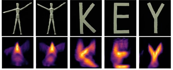 MIT的研究员们基于视域外的视频投射在附近物体上的阴影,预测出视域外的内容。 上面一行显示的是研究员使用这种方法重现的视觉元素,下面一行则是原始物体。