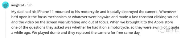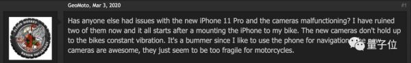 有网友称,很久以前自己爸爸的iPhone 11就是因为安装在摩托车上后,相机出现了严重的对焦失灵问题。