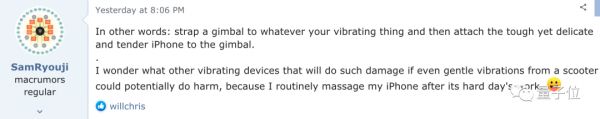 如果摩托车的轻微振动都有可能造成影响,那我很想知道还有什么振动设备会产生影响。毕竟我每天下班后还会给我的iPhone老爷做个按摩。