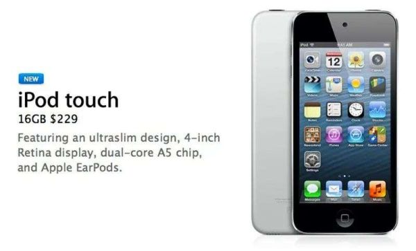 2012 年,苹果发布 32GB/64GB 的第五代 iPod touch。一年之后推出了 16GB 的容量,作为低端选项,与32GB、64GB 的同类产品相比,16GB 的第五代 iPod touch 仅提供单一的银色选项,且没有后置摄像头。