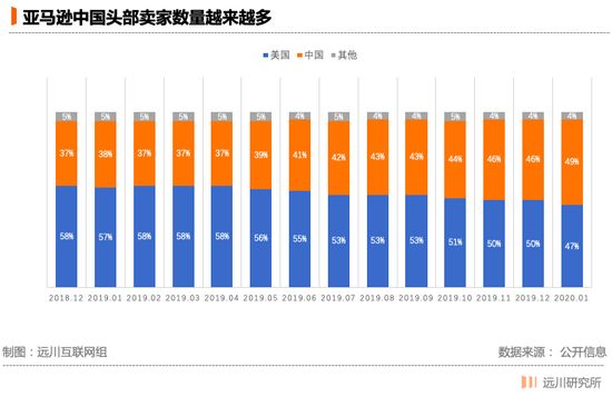 由于亚马逊的推荐机制让优质品牌获得更多的曝光机会,亚马逊的优质卖家价值自然更大。亚马逊上排名前10000的卖家被视作头部。中国商家在头部卖家中的占比在2020年初达到49%,比美国还多了2%。