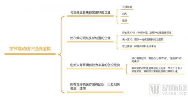 综上来看,字节跳动在选择医疗服务企业投资标的的时候,会选择与自身业务兼容度更高,或者处在细分领域头部位置的企业,其中,创始人的背景里要有足够丰富的创投经历。