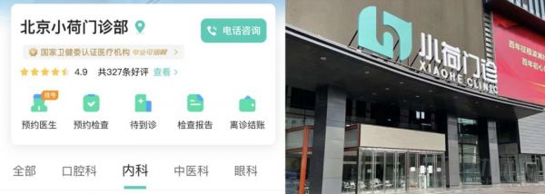 在内部,字节跳动已经在尝试线上线下的融合。观察“小荷”APP可以发现,于今年年中正式营业的北京小荷门诊部也在近期放在了首页的醒目位置,其提供了“预约医生”和“预约检查”等功能,并拥有“口腔科”、“内科”、“中医科”“眼科”等科室,业务主要偏向消费医疗和常规检查。数据显示,目前已有327条患者评价。