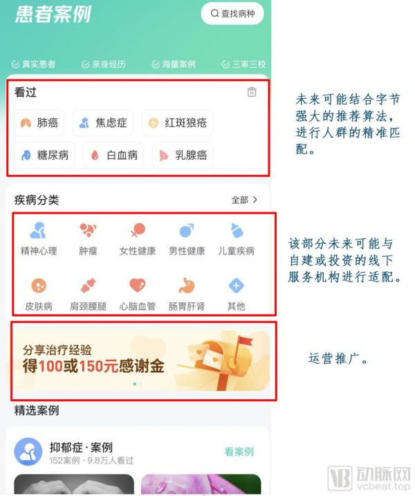 首先,“患者案例”板块方面,字节跳动上线了“患者案例”模块。根据介绍,“患者案例”的定位是分享病友真实治疗经验。