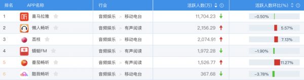 根据易观千帆数据,喜马拉雅的活跃人数远超对手,但一个危险的信号是,环比增速在走下坡路,而巨头的番茄畅听、懒人畅听活跃用户数增速迅猛。目前站在队尾的酷我畅听也在大力吸纳创作者。林喜告诉开菠萝财经,酷我畅听的内容激励和扶持主播的力度非常大,一度非常动心。