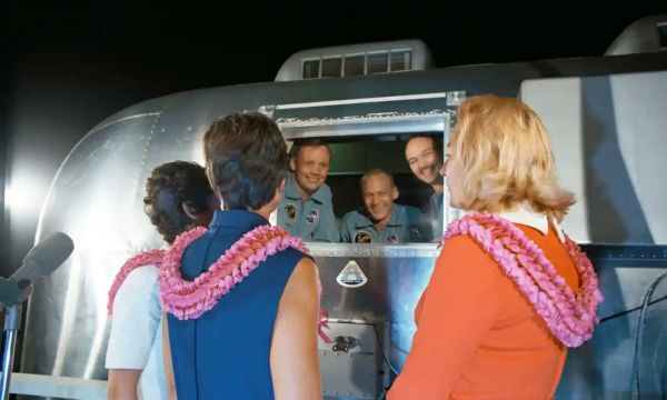 1969年7月,尼尔·阿姆斯特朗、巴兹·奥尔德林和迈克尔·柯林斯通过移动检疫设施的窗户与他们的妻子交谈。