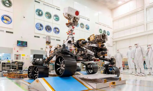 “你们要假装没来过这里。”NASA的大卫·塞德尔告诉我们。“这是很珍贵的机会。”喷气推进实验室主任迈克尔·沃特金斯说,欢迎我们进入位于加州帕萨迪纳郊外山上的实验室的航天器组装设施。等待我们的这场极不寻常的冒险是进入无尘室,在那里,NASA最新的毅力号火星车在严格的无菌条件下组装起来,正等待着运往卡纳维拉尔角。