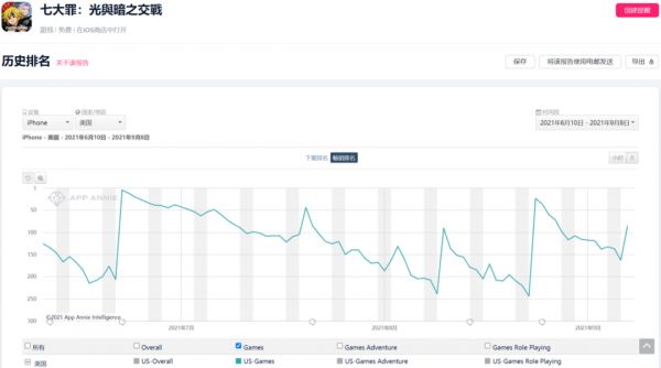 在美国市场的前端,RPG这个品类现存产品的时间跨度相当之大——你既能看到近两年之内上线、画面技术最前沿的新作,还能看到手游早期那些最典型的代表作。就比如说,作为某一类回合制RPG的鼻祖,《魔灵召唤》这个堪称“年代久远”的RPG手游,至今也仍然活跃在美国iOS畅销榜Top 100~Top 150的区间。