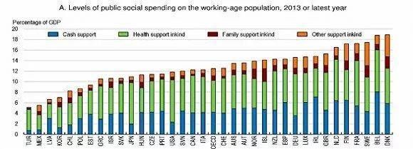 OECD国家社会支出比例。图片来源:经济合作和发展组织
