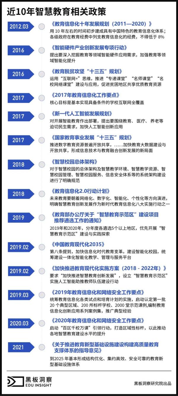 众多企业入局智慧教育赛道,是因为智慧教育既符合未来教育的目标,也是政府教育现代化的规划方向。智慧教育有着政府背书,一方面政府发布的教育相关文件中,多次提到教育现代化;另一方面政府也在寻求与企业合作,建立试点、示范区,不断探索。无论是政府和科技企业合作对于智慧课堂、智慧学校、智慧教育示范区的建设,还是各个科技公司对于各种教育科技产品、平台系统的开发,都显示出智慧教育赛道的火热。
