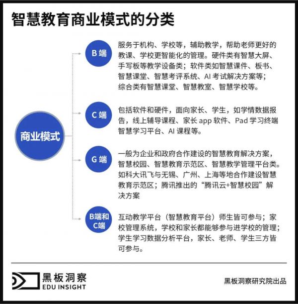 随后教育部发布了《中国教育现代化 2035》,一系列官方政策的指引下,让大批科技企业看到了机遇,纷纷入局智慧教育赛道,一些企业选择 C 端的智慧教育硬件研发,为学习者提供智能化的学习环境;一些企业选择为学校、机构提供智慧教育相关教学软件和硬件,提升教学质量水平;一些企业选择与政府、学校合作开展智慧教育解决方案的探索和实践,创造智能化的场景。