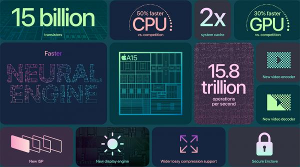 除了CPU和GPU性能增强之外,A15芯片还搭载了更快的神经网络引擎和新一代图像信号处理器。