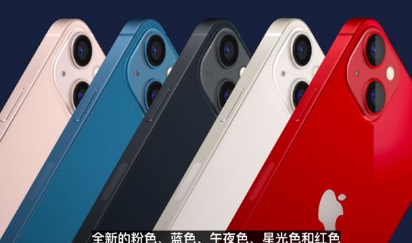 iPhone 13 mini和iPhone 13配色:粉色、蓝色、午夜色、星光色、红色