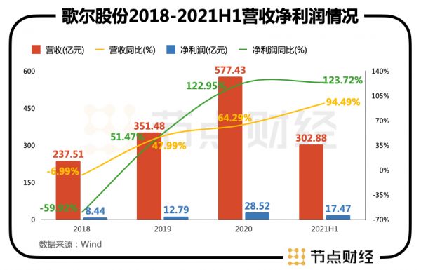 除了资本上的好消息,歌尔股份上半年亦表现不俗。
