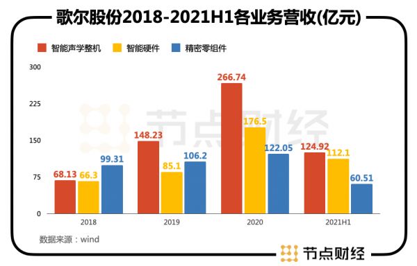 歌尔股份有三个业务板块分别是精密零组件业务、智能声学整机业务、智能硬件业务三大业务板块。早期,精密结构件是占比较重的一个业务版图。