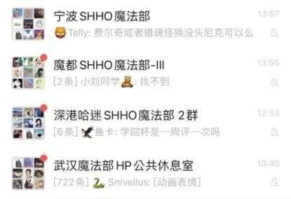 1. 每个微信群的起名逻辑都遵从于地名+SHHO魔法部 (SHHO代表强大、荣耀等四种特质) ,哈迷们进群后就会将备注名修改为×院+英文名;