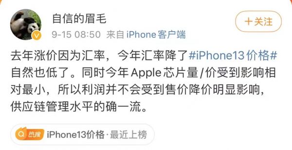 对于 iPhone 13 系列国行降价的原因,前 OPPO 副总裁沈义人在微博表示,“去年涨价因为汇率,今年汇率降了 iPhone 13 价格自然也低了。” 其称,“同时今年 Apple 芯片量/价受到影响相对最小,所以利润并不会受到售价降价明显影响,供应链管理水平的确一流。”